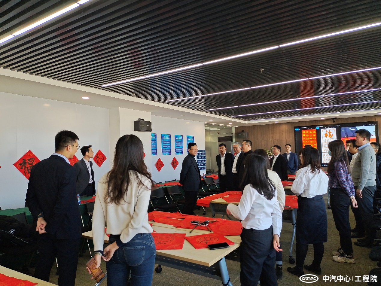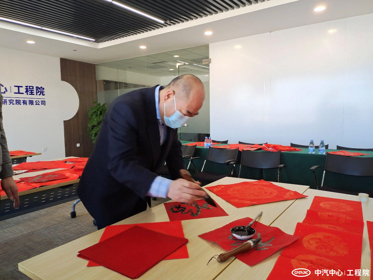 1月28日,正值虎年春節(jié)到來之際,工程院分會組織員工現(xiàn)場潑墨,題寫春聯(lián),用對聯(lián)裝點(diǎn)辦公區(qū)域,帶來了一份節(jié)日的喜氣。中汽中心黨委書記、董事長、總經(jīng)理安鐵成來到活動現(xiàn)場慰問工程院干部職工。中汽中心職工董事、工會主席文寶忠現(xiàn)場揮毫題“福”,大家在現(xiàn)場紛紛打開AR集五福,沾沾來自文主席的“敬業(yè)福”。