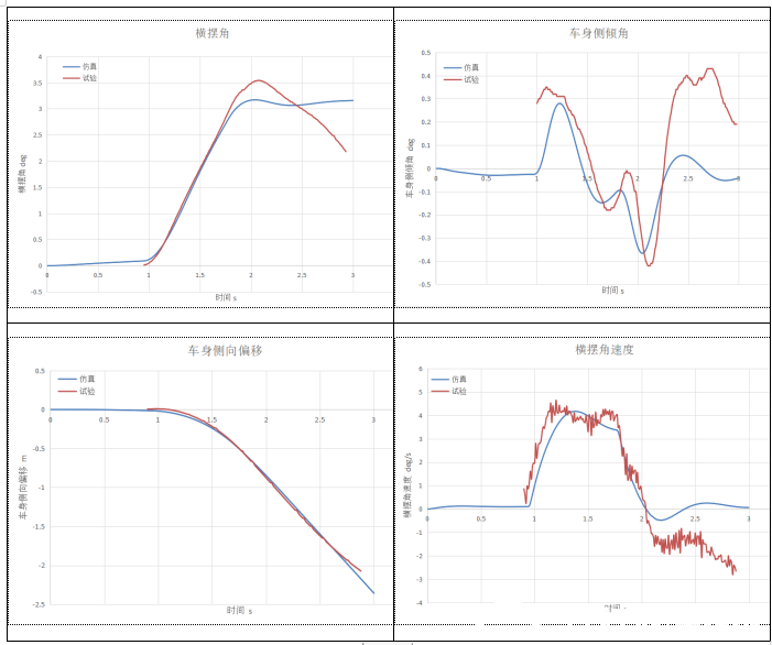 圖2 某車側(cè)風(fēng)穩(wěn)定性動(dòng)力學(xué)仿真與試驗(yàn)對(duì)比分析
