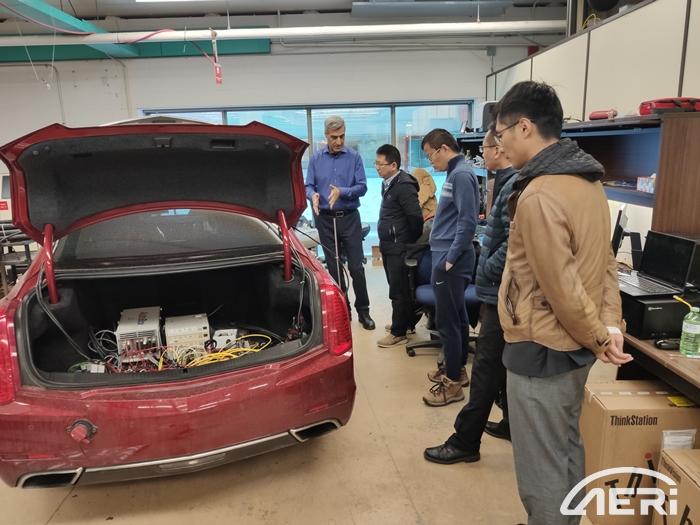 交流訪問中,王新宇介紹了第三開發(fā)本部底盤方向業(yè)務(wù)的轉(zhuǎn)型需求,并與Amir院士團(tuán)隊(duì)進(jìn)行了討論,探討潛在的合作機(jī)會(huì),并邀請(qǐng)我方代表參觀車輛機(jī)電系統(tǒng)實(shí)驗(yàn)室產(chǎn)學(xué)研融合成果。目前滑鐵盧方面在車輛動(dòng)力學(xué)這一領(lǐng)域主要的研究方向有:車輛底盤系統(tǒng)主動(dòng)控制與狀態(tài)估計(jì)、發(fā)動(dòng)機(jī)可變氣門正時(shí)系統(tǒng)、主動(dòng)懸架、智能輪胎、域控制器、有限場景自動(dòng)駕駛汽車等。