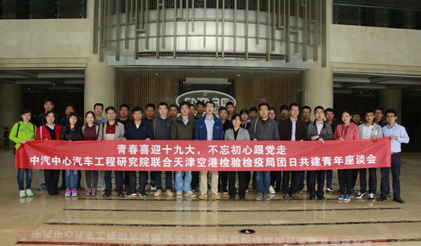 為激發(fā)廣大團員青年的光榮感和自豪感,慶祝黨的十九大勝利召開,2017年10月20日,中汽中心汽車工程研究院(以下簡稱“工程院”)聯(lián)合天津空港檢驗檢疫局(以下簡稱“空檢局”)舉辦了“青春喜迎十九大,不忘初心跟黨走”主題團日共建青年座談會,工程院團支部代表、空檢局團委代表共計40余人參加座談會。